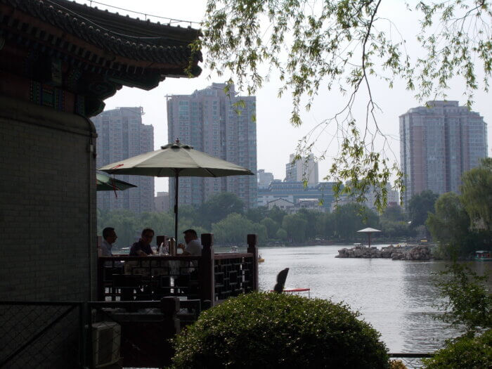 All das spielt um den Houhai herum, den mittleren der hinteren Seen, die Beijing teilen und an deren Ufern die Menschen Erholung und Vergnügen suchen.